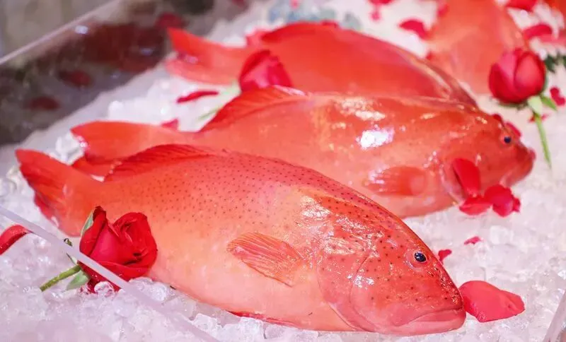 东星斑中以通体绯红的品种最为珍贵,其鲜艳的“中国红”色泽,直接呼应了中国文化中对红色的崇尚,