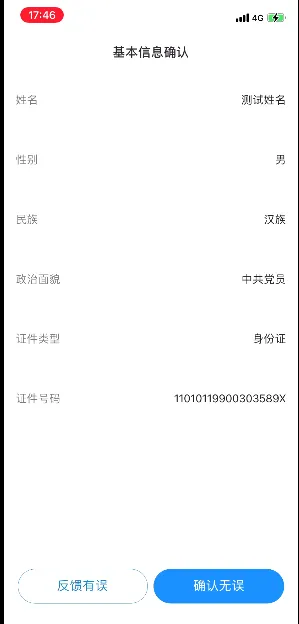 信息有误:若发现任何信息错误(如姓名错别字、证件号错误等),立即点击【反馈有误】按钮。