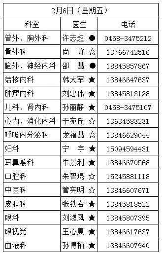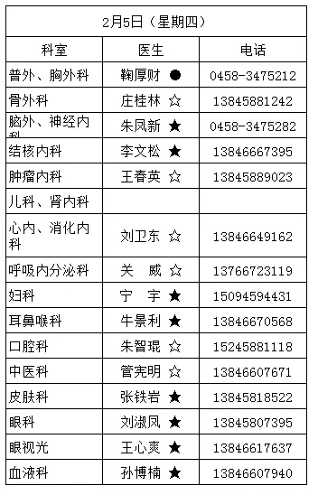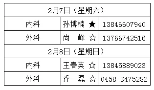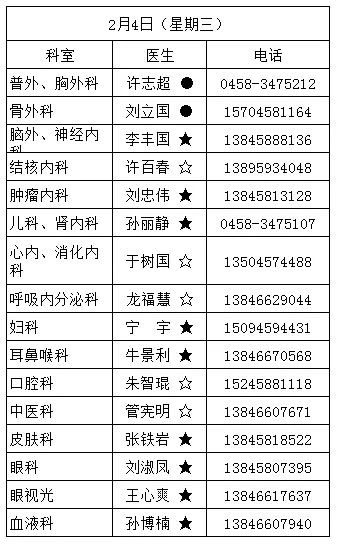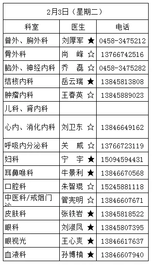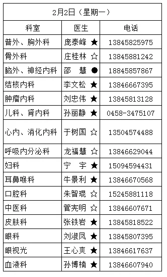 黑龙江省林业第二医院2月2日—2月8日医生出诊信息