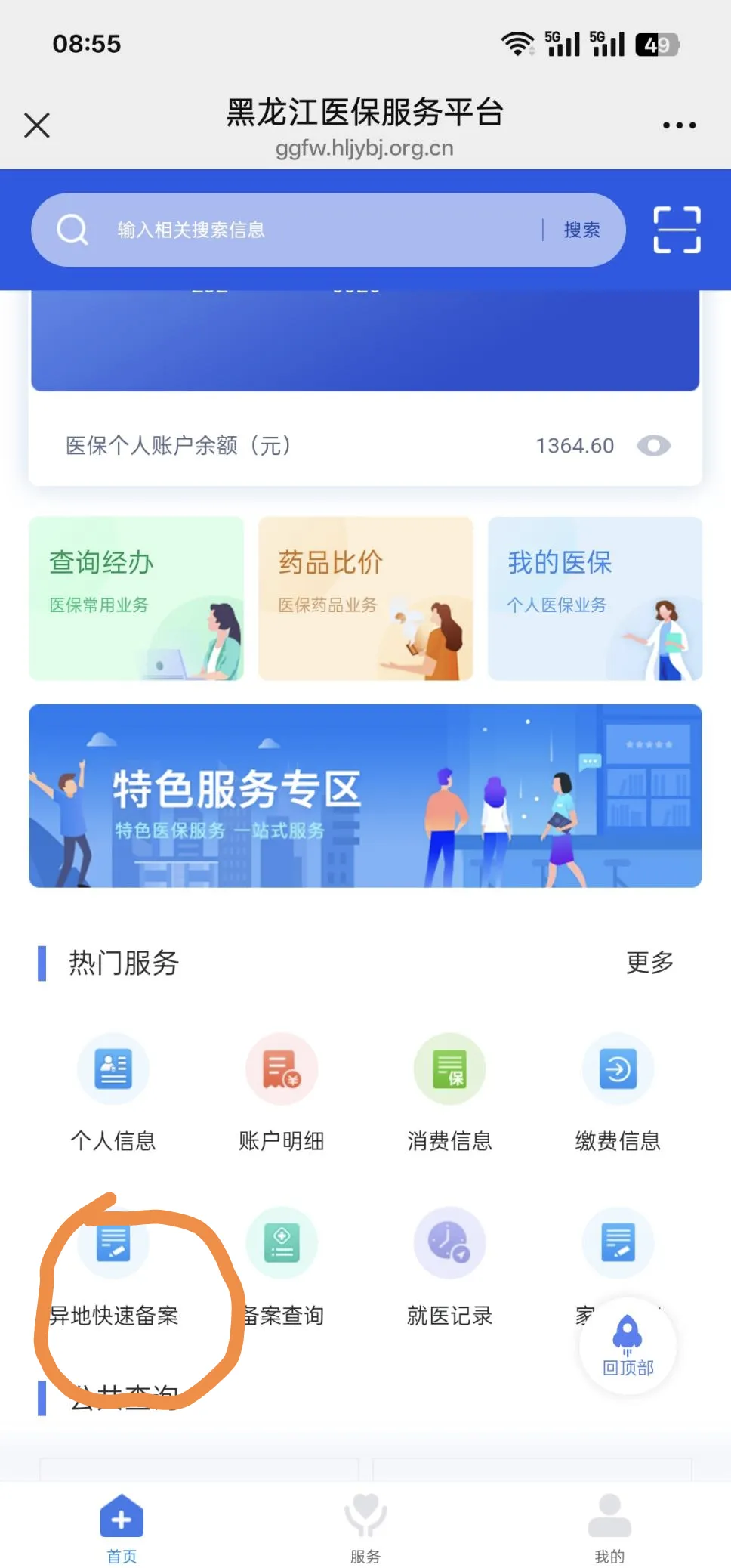 第三步:点击“异地快速备案”