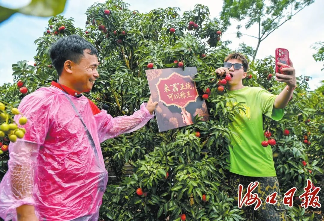 在秀英区建群村果园,游客正在采摘火山荔枝王。海口市融媒体中心记者 石中华 摄