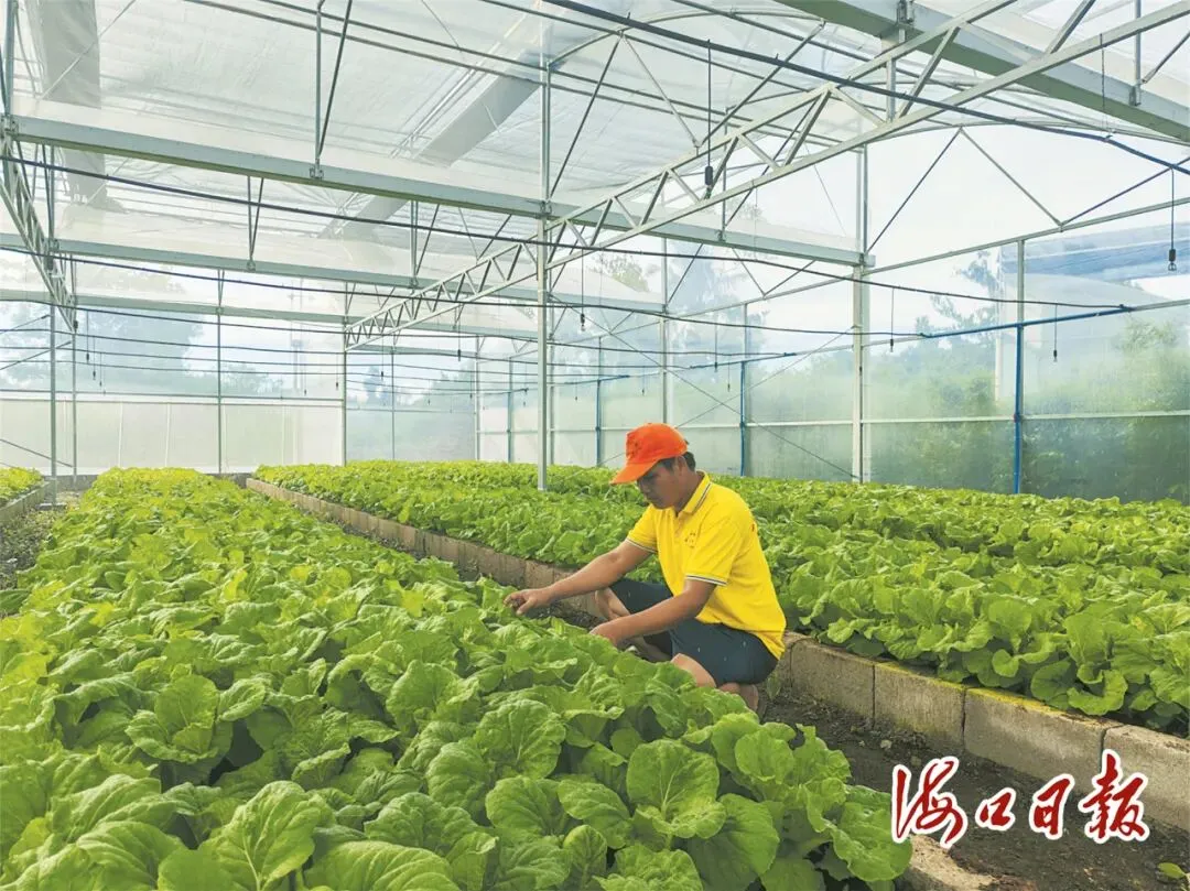 在龙华区遵谭镇龙合村,农户在育苗棚内进行蔬菜管护。海口市融媒体中心记者 邝晓霞 摄