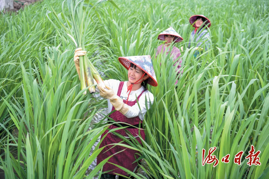 在琼山区红旗镇七水洋蔬菜种植基地,农户正在采收茭白。海口市融媒体中心记者 苏弼坤 摄