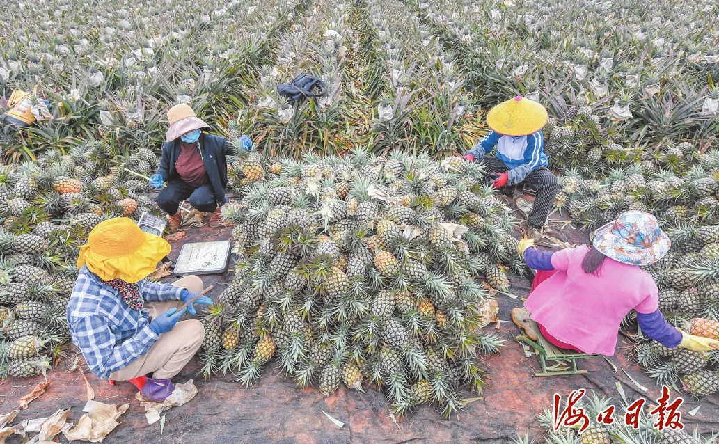 在美兰区大致坡镇美峰村,农户在采收凤梨。海口市融媒体中心记者 孙士杰 摄