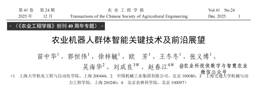 农业机器人群体智能作为引领现代农业机器人战略性前沿技术之一,在提高农业生产效率和可持续性方面具有巨大潜力,对于实现安全可靠、自主高效、精准智能,支撑现代农业发展具有极其重要战略意义。