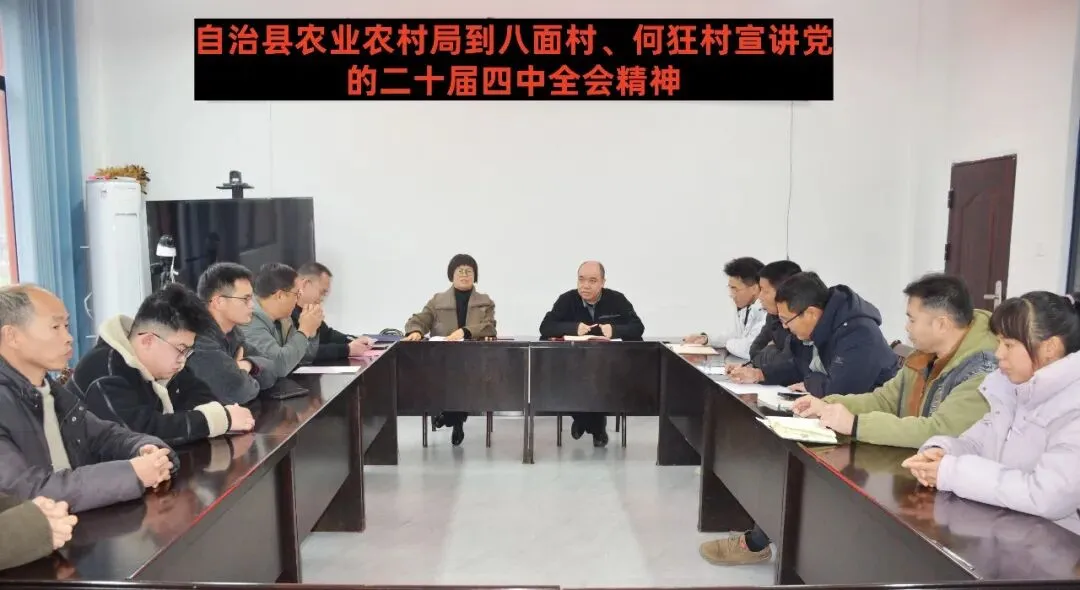 1月29日,环江农业农村局党组成员莫邡砚、县纪委监委派驻县农业农村局纪检监察组组长卢长翔一行,赴龙岩乡黄种村、明伦镇八面村、何狂村开展党的二十届四中全会精神专题宣讲,并召开村“两委”换届廉政提醒谈话会,村党员干部、驻村工作队及村民代表参加活动。