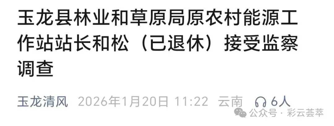 嘿,各位朋友,今天咱们得好好聊聊一个严肃的话题。就在 2026 年 1 月 20 日,玉龙县监委放出消息,说玉龙县林业和草原局原农村能源工作站站长和松(已经退休了)涉嫌严重违法,现在正接受监察调查呢。这事儿可不是小事,得好好说道说道。
