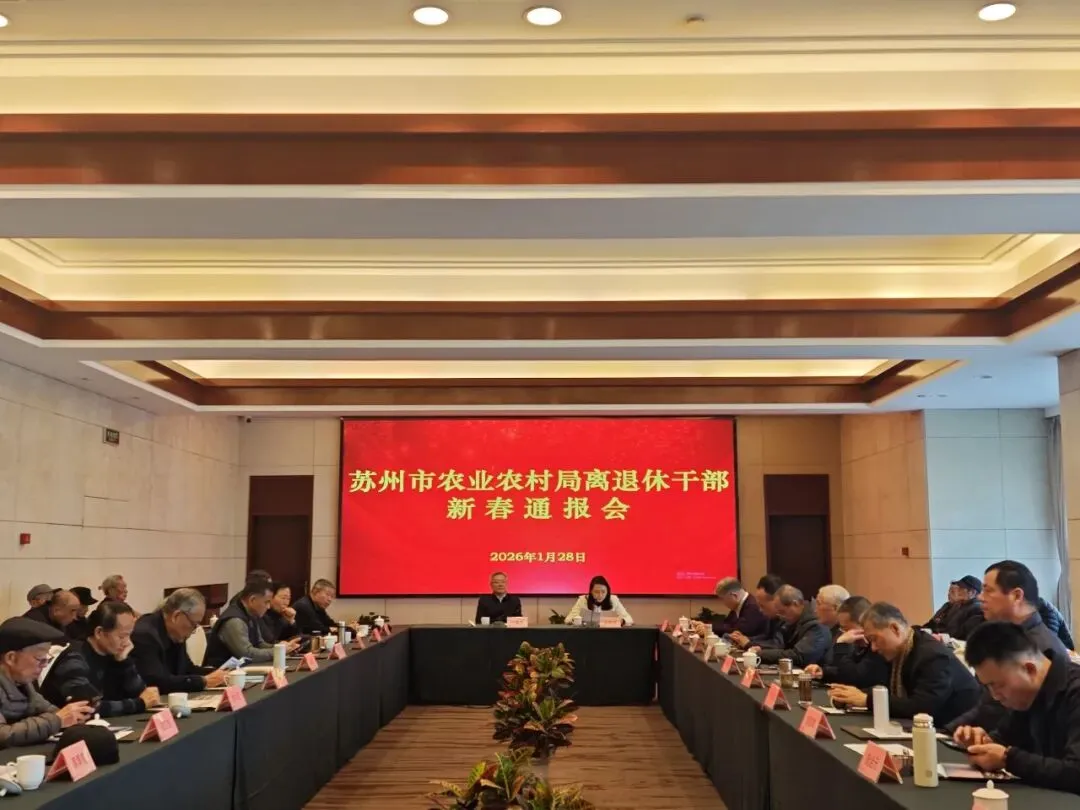 会上,市农业农村局副局长、党组成员张莉莎围绕“十四五”苏州“三农”工作作情况通报。两位新当选的离退休支部书记,市农业农村局原一级调研员马刚、市农业农村局原三级调研员高明作为老干部代表发言,对市农业农村局在“十四五”期间取得的工作成绩予以高度评价,对2026年工作提出了宝贵意见建议,并表示要提高政治站位、履行书记职责、建强战斗堡垒。老同志们一致表示,要发扬“离岗不离党、退休不褪色”的优良传统,继续发挥作用,为苏州“三农”事业贡献银辉力量。