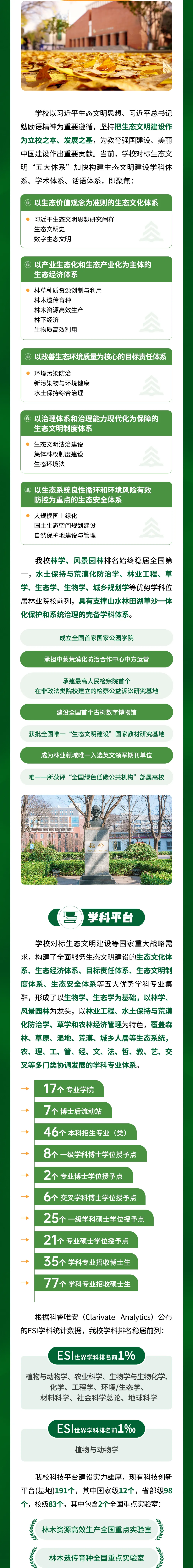 林学学科2017年、2022年连续两轮入选 “双一流”建设学科。