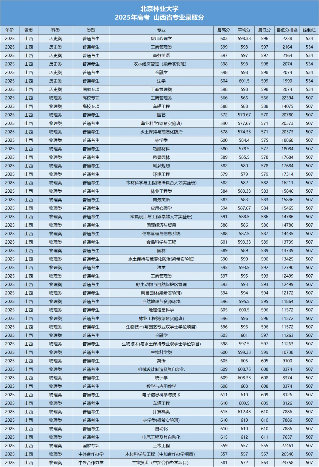 2025年在晋 专业录取分
