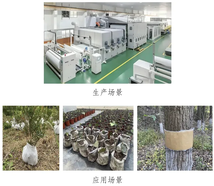 本成果可替代树木移植塑料软包材料,应用到城市园林绿化工程:市政道路、公园、社区等树木移植场景;生态修复项目:矿山修复、湿地重建、荒漠化治理等生态工程中的树木移植。