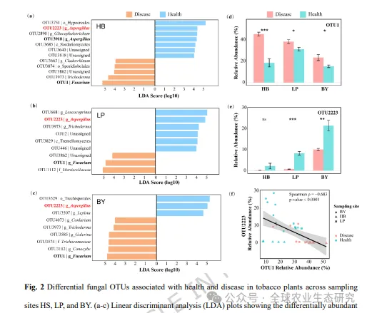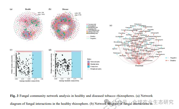 烟草(Nicotiana tabacum)是全球重要的经济作物之一,但其生产长期受到土传病害的严重威胁。其中,由尖孢镰刀菌属(Fusarium spp.)引起的烟草枯萎病,是制约烟草可持续生产的关键因素之一。传统依赖化学农药的防控方式不仅成本高,还可能带来环境污染和抗药性问题。近年来,根际微生物群落,尤其是根系相关真菌,被认为是作物抵御病害的重要“生态屏障”。健康植物往往能够在根际招募有益微生物,从而抑制病原菌的侵染。然而,健康与发病烟草在根际真菌群落结构上的差异,以及哪些关键微生物在病害抑制中发挥核心作用,仍缺乏系统认识。