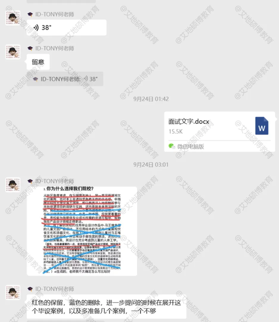 艾地的老师会针对我的目标院校进行模拟面试,并且提醒我提交对应的材料和准备工作。模拟面试时老师会跟我进行一个沉浸式的交谈,引导我去回答问题,熟悉面试的节奏与过程。