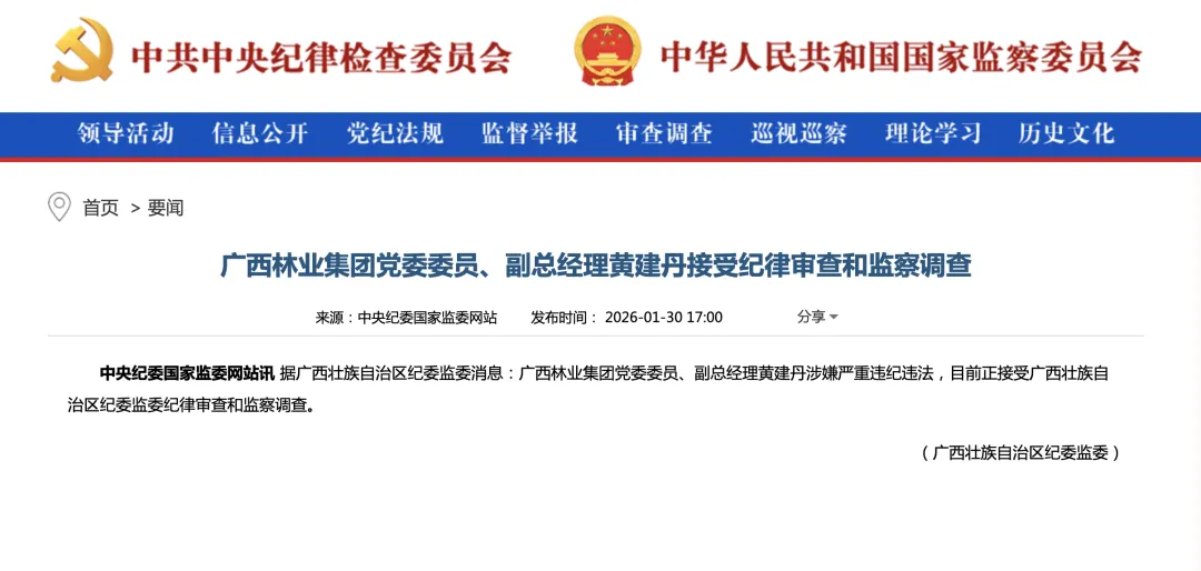 2026年1月30日,据中央纪委国家监委消息,