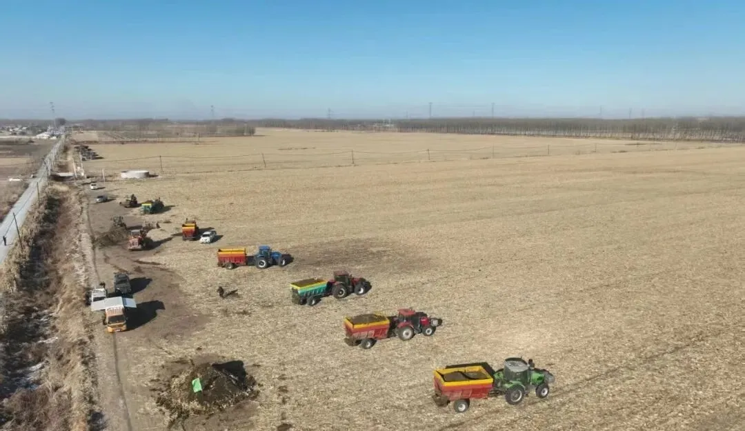 现场,多台粪肥抛撒机和铲车整齐列队,有条不紊地进行堆沤肥抛撒作业。据悉,项目将聚焦大黑岗子镇、养士堡镇、城郊街道、茨榆坨街道等六个镇(街道),共计完成62697.93亩玉米示范区堆沤肥还田工作,总施用量为62698吨,完成后将有力推动畜禽粪污资源化利用,为筑牢粮食安全防线、推动农业绿色高质量发展奠定坚实基础。