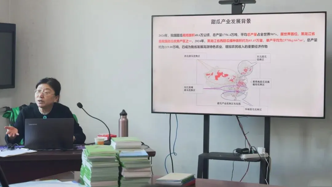 此次培训邀请到省、市农技推广研究员以及梅里斯农业综合服务中心高级农艺师,分别就《寒地薄皮甜瓜简约化栽培技术》和《科学安全施药 减少除草剂残留药害》等方面内容进行专题讲解。
