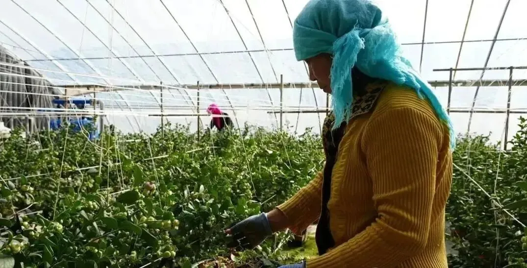 02 永靖县蓝莓鲜甜上市近日,在永靖县太极镇孔寺村村集体经济产业基地的现代化温室大棚内优质蓝莓正抢“鲜”上市,为初春水果市场注入一抹清甜活力。该蓝莓种植基地由永靖县农发集团与辽宁东港市君桦生态果业有限公司合作共建,于去年底成功引进L11、L25等优质品种,并配套水肥一体化、智能温控等先进设施,实现了精细化、科技化种植。目前,园区内4座大棚的蓝莓已进入丰产期,预计总产量可达6000斤。