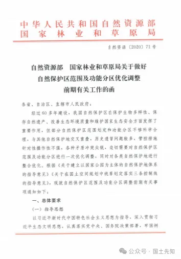 >自然资源部、国家林业和草原局联合发文—关于做好自然保护区范围及功能分区优化调整前期有关工作