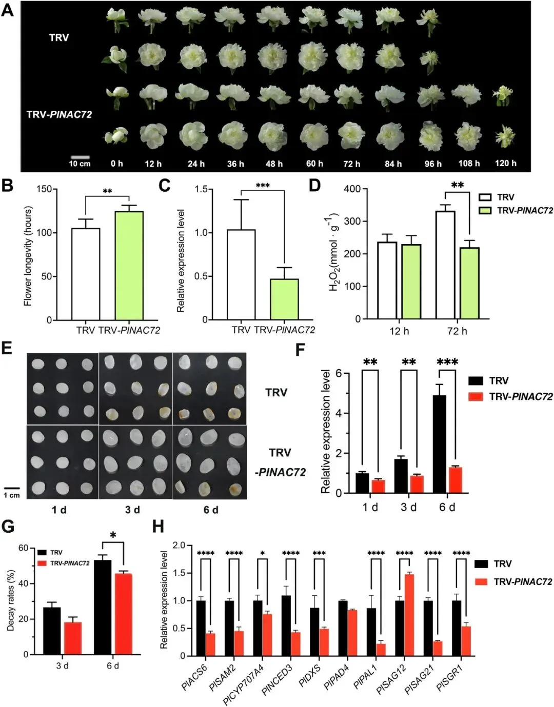 本研究揭示了PlNAC72受到年龄及ABA诱导,进一步通过调控激素信号加速芍药花瓣衰老,为延缓芍药花朵衰老提供了新思路,也为采后保鲜提供了新的作用靶点。