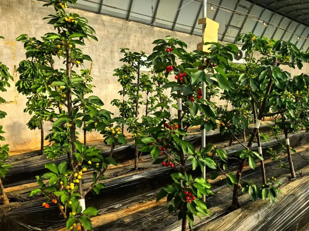 今年是新区设施大樱桃现代农业产业园超早熟大樱桃挂果的第二年。园区引进了智能休眠冷暖除湿一体机、智能放风机和智能补光设备,能精准调控棚内温湿度和光照条件,模拟出樱桃树休眠、生长所需的最佳外界条件。在这里,大樱桃从休眠到萌芽,从开花到结果,每一个生长环节都被精心“拿捏”,最终实现反季“抢鲜”上市,稳稳填补了冬季水果市场的空档。