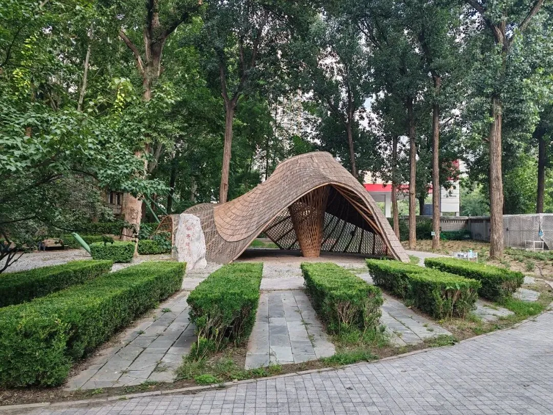 第一是竹亭取风起云扬之意,第二是与校园环境和花园节的氛围契合,第三是概念方案引入数字模型。(来源于网络)