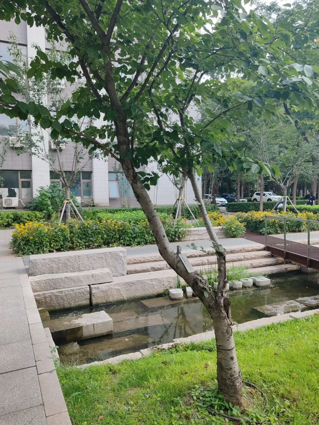 光雨之泉是发起绿色、指引绿色的出发点,是整个林之心的东大门。它将整个林之心的东西轴线连成一线,能够一览整个园区的水系,同时也是智慧园林中的海绵园林的技术体现。(来源于网络)
