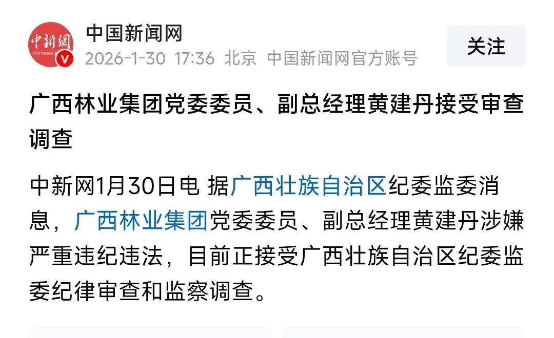 >涉嫌严重违纪违法!广西林业集团副总经理 黄建丹 被查!