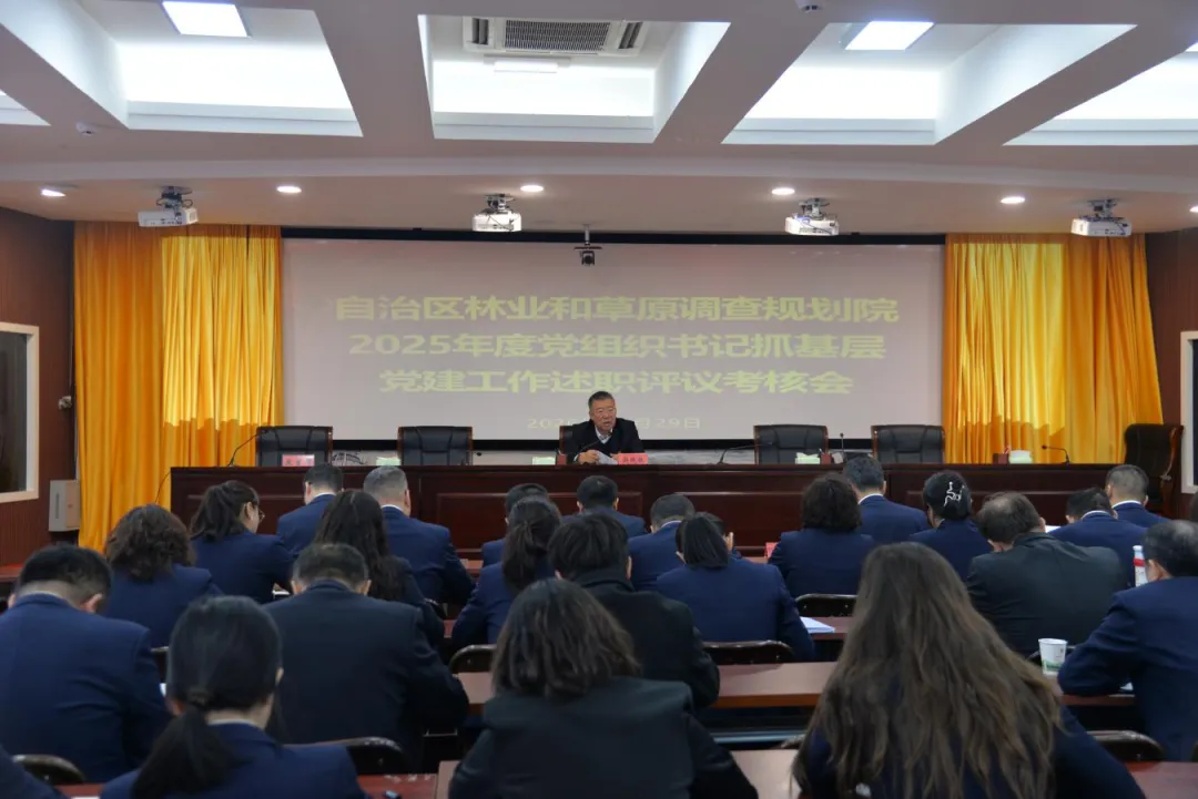 为深入落实新时代党的建设总要求,压实基层党建主体责任,1月29日,自治区林业和草原调查规划院党委召开2025年度党组织书记抓基层党建述职评议会议。院党委领导班子成员、党支部负责人、非中共党员科室负责人、党务干部、群众代表参加会议。