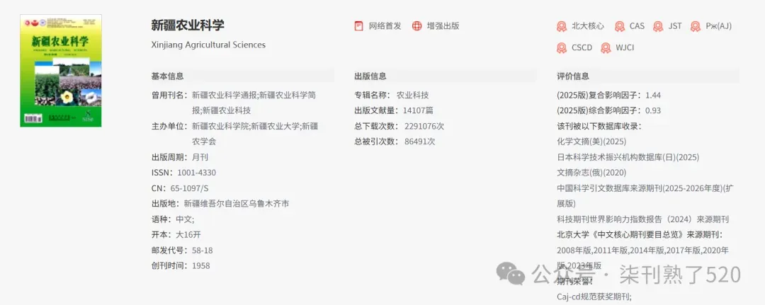 《-新疆农业科学-》北大核心,第一批学术期刊。主办单位:新疆农业科学院、新疆农业大学、新疆农学会。征集:农业经济、作物育种与栽培、生物技术、植物保护、土壤肥料、园艺特产、林业、农业机械、农田水利等等。8000字符起发,必须含高质量图表文章,必须中英双语。26年3月刊期10月出刊。