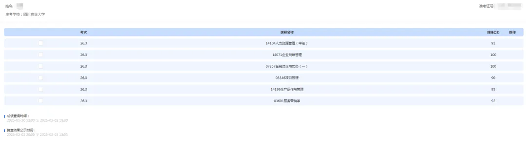 3、如对成绩有异议的(30-59分段),请于2月1日18:00前,在成绩查询页面点击课程成绩对应的“申请”按钮提交成绩复核申请,查分结果将于2月3日16点前公布在查询成绩的网址(如成绩无变化,代表查分结果无变化)