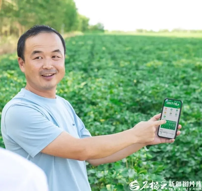 呼图壁县大丰镇红柳塘村棉农借助智能水肥一体化平台,通过手机操作完成棉花浇水与施肥工作(2025年8月3日摄)。 何龙 摄