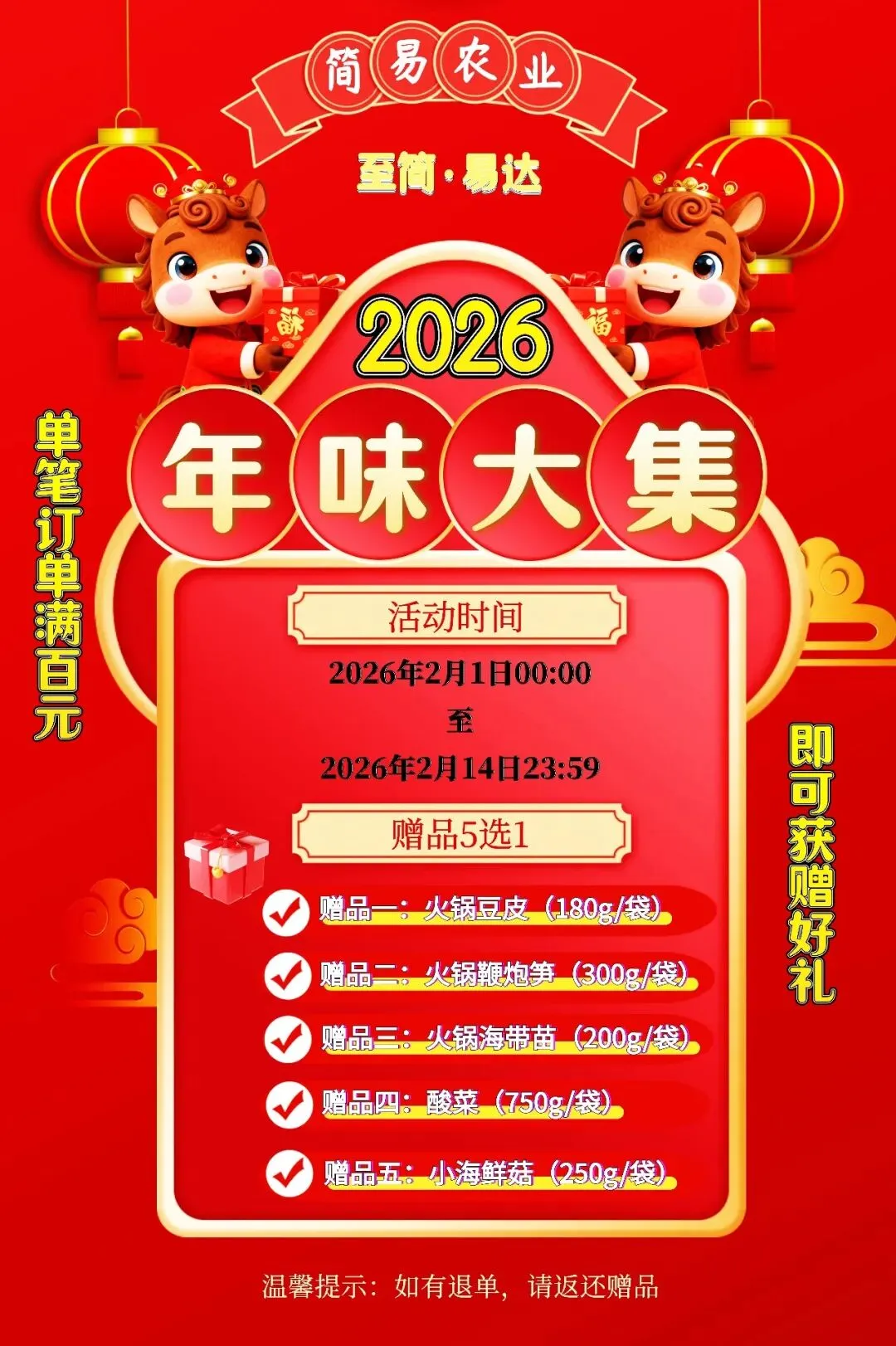过了腊八,年味渐浓,简易农业宠粉福利准时上线!感恩新老客户一路相伴——诚意拉满——超值“年味大集”正式开启!