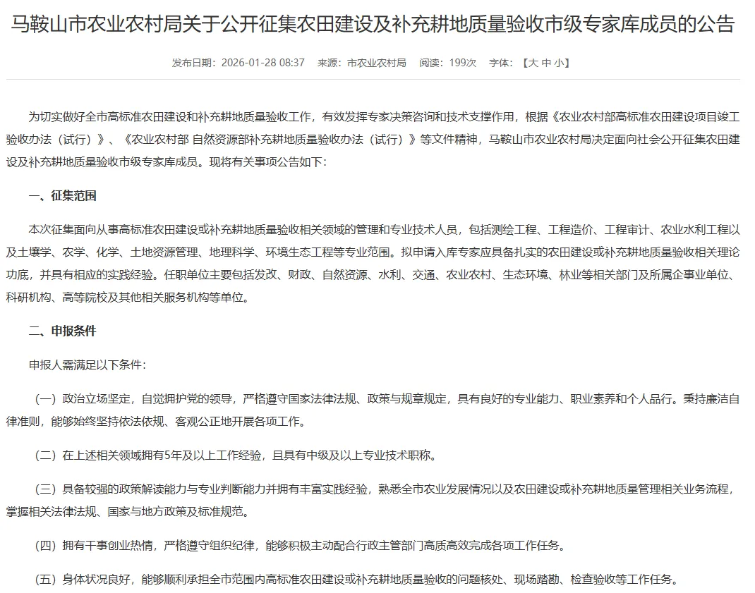 市农业农村局农田建设及补充耕地质量验收市级专家库