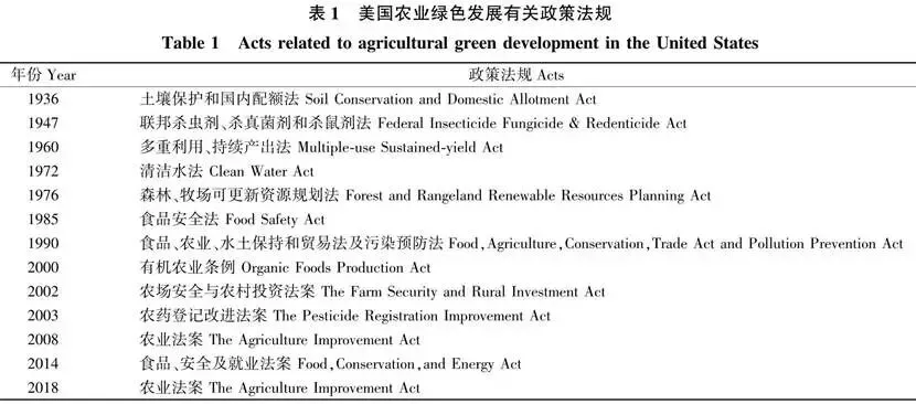 美国是世界上最早进行生态农业实践的国家之一,在20世纪70年代就提出了通过技术手段实现少投入、高产出、高效益的可持续农业发展理念,即最大限度优化利用农业生产所需的水、种子、农药及化肥等各种投入品,获得较高的产量和经济效益。一是出台系列政策法规,形成了以农业法案为核心的制度体系(表1)。美国于1933年颁布《农业调整法》,这是美国农业发展的基本法律制度,每5年修订1次,近年来法案更加重视资源环境保护、食品安全等领域,进一步聚焦可持续农业。颁布《土壤保护和国内配额法》《清洁水法》《食品安全法》等,把土壤保护和调整农业结构结合起来,鼓励农户多种植豆科作物、牧草等增强地力的作物,制定农药、化肥等投放量标准,规定对造成环境污染者征收农药税、化学肥料税等。2000年出台《有机农业条例》,界定了有机农产品等概念,列举了有机农产品中允许和禁止使用的物质,为境内销售的有机农产品制定统一标准。二是实施多样的农业资源和环境保护项目,实现分类管理。对于环境敏感、生态脆弱的区域,采取退出农业生产并种植保护性覆盖植被的方式; 对于自有耕地、林地等,鼓励农业生产者实施绿色发展措施,对达到保护标准的生产者给予奖励,加强土壤和生态保护。三是突出技术创新和综合应用,促进养分最大利用和减少损失。其中,推广应用较广的是最佳管理实践(BMP):一方面开展精准施肥、肥料深施、缓控释肥应用等养分管理,以及免耕少耕、秸秆还田、合理轮作等耕作管理; 另一方面通过建立植被缓冲区、人工湿地以及多水塘系统等生态工程,降低污水的地表径流速度,以拦截、降解和沉降污染物,阻控污染物向水体运移。