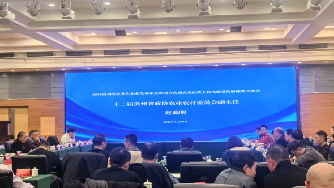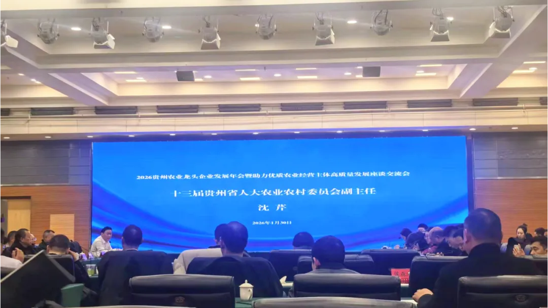 1月30日下午,2026贵州农业龙头企业发展年会暨助力农业优质经营主体高质量发展座谈交流会在金阳大酒店召开。贵州黔艾农业科技(集团)有限公司作为艾草全产业链一体化农业科技型代表企业受邀参会,与全省农业龙头企业共聚一堂、共话发展。