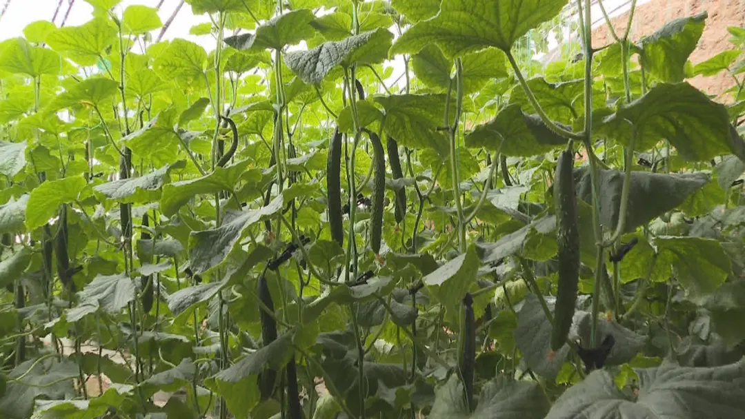 在位于大河镇的绿康果蔬农民专业合作社内,连绵的温室大棚构成了冬日里独特的风景线。棚内,黄瓜藤蔓蜿蜒而上,顶花带刺的黄瓜油亮顺直,社员付彦飞正带领工人进行吊秧、缠蔓等管护作业。作为合作社的受益农户,付彦飞种植黄瓜已有十余年历史,配套了卷帘机、保温被等现代化设施,通过科学种植和精细管理,实现了高产稳产。