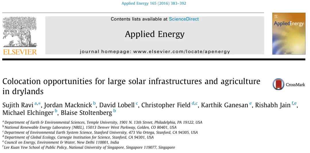 论文题目:Colocation opportunities for large solar infrastructures and agriculture in drylands