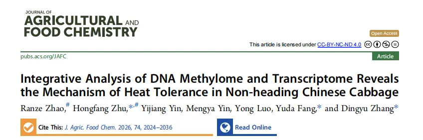 2026年1月7日,上海市农业科学院朱红芳团队联合上海交通大学方玉达教授在Journal of Agricultural and Food Chemistry上发表题为“Integrative Analysis of DNA Methylome and Transcriptome Reveals the Mechanism of Heat Tolerance in Non-heading Chinese Cabbage”的研究论文,研究通过整合分析热胁迫下NHCC的DNA甲基化组和转录组数据,揭示了DNA高甲基化在NHCC耐热性调控中的正向作用。