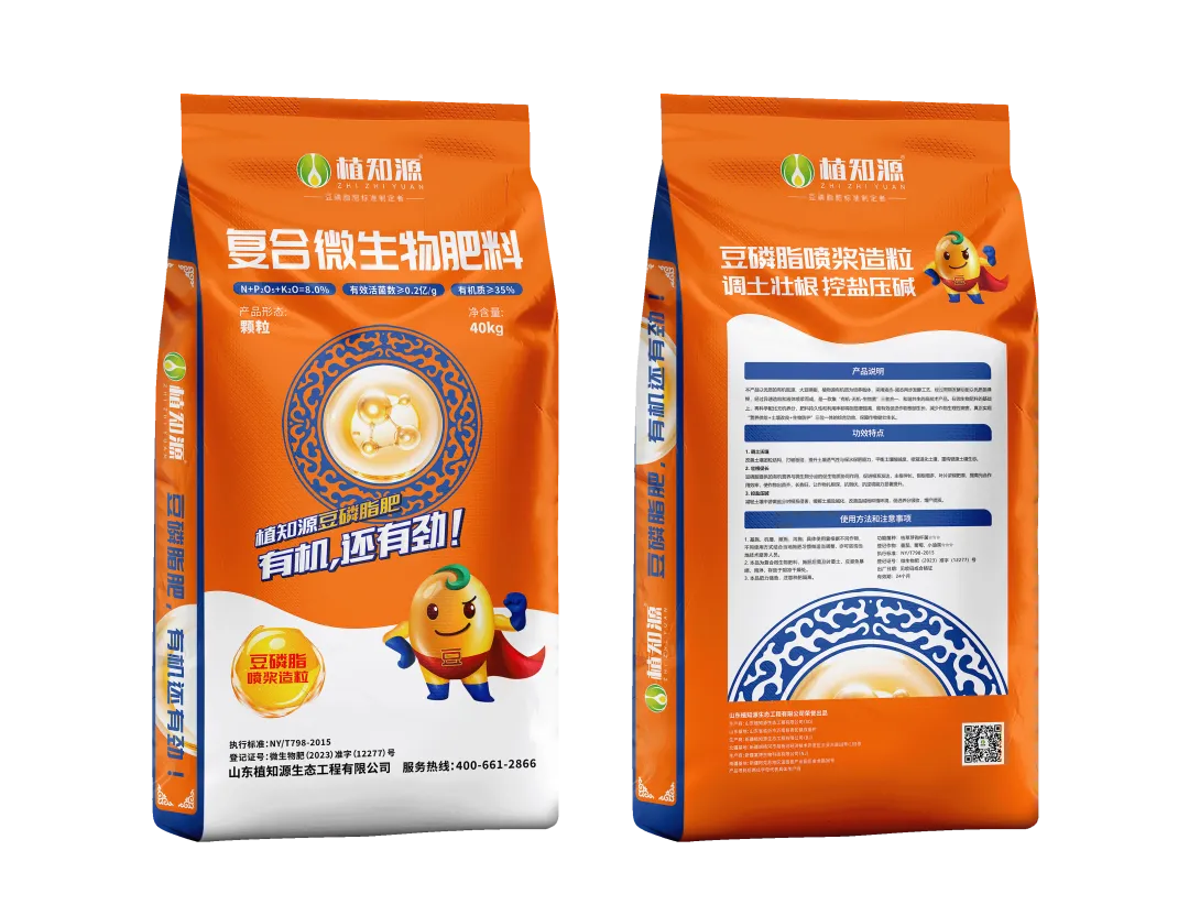 本产品以优质的有机氮源、大豆磷脂、植物源有机质为培养载体,采用液态-固态两步发酵工艺,经过周期发酵后配以优质氮磷钾,经过异速造粒和液体喷浆而成,是一款集“有机-无机-生物菌”三者合一、和谐共生的高技术产品。在微生物肥料的基础上,再科学配比无机养分,肥料持久性和利用率都得到显著提高,能有效促进作物根部生长、减少作物生理性病害,真正实现“营养供给+土壤改良+生物防护”三位一体的综合功效,保障作物健壮生长。