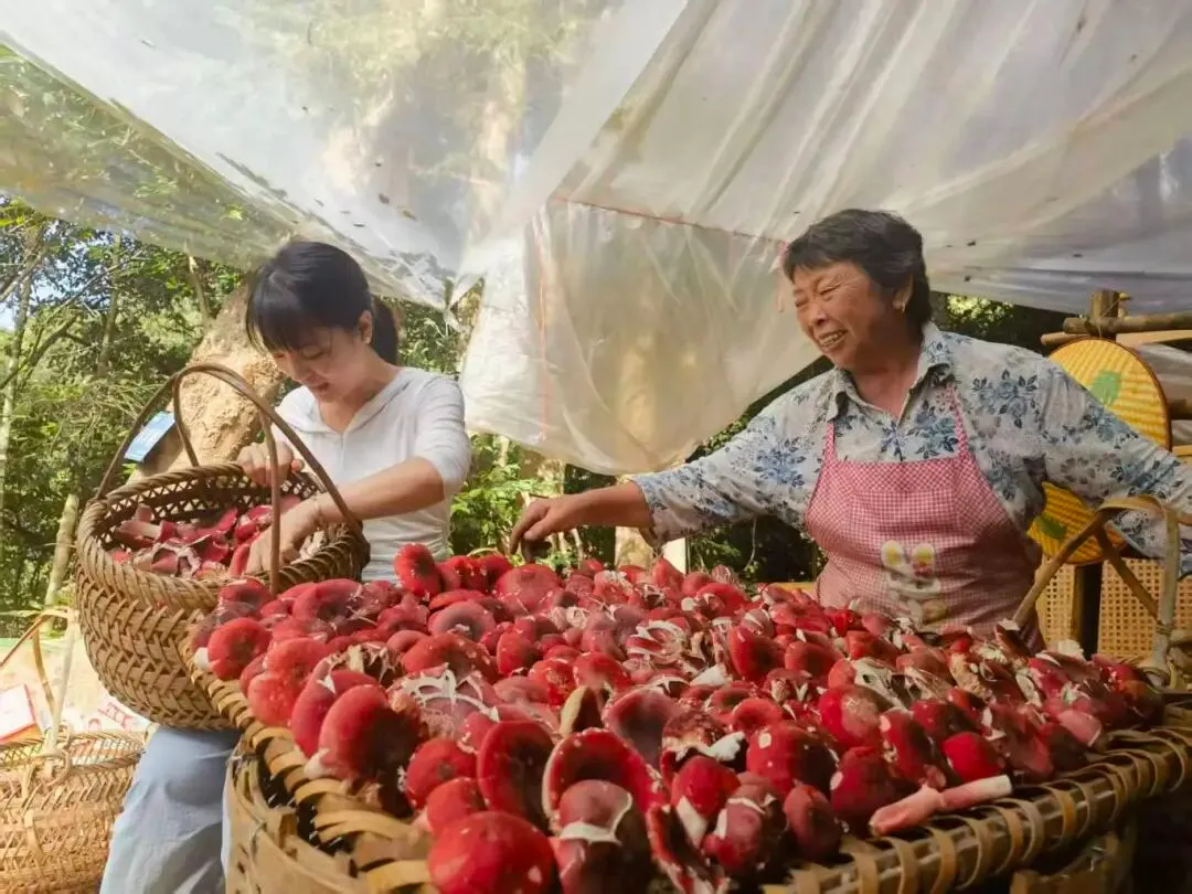 一是巡护常态化。建立“县统筹+乡镇监管+合作社落实+农户参与”四级管护体系,组建专业化护林队伍32支,配备无人机、红外相机、智能巡护终端,加强常态化巡护。二是采菇科学化。制定《林下红菇科学采收技术规范》,明确“每年7—9月为集中采收期、菌盖未开伞为采收标准、严禁采摘幼菇”,从源头杜绝“杀鸡取卵”式采摘,保障红菇种群自然繁衍。三是抚育精准化。对阔叶林通过清理林下杂灌和人工补植栲树、米槠、红锥等红菇伴生树种,提升红菇生长的“绿色屏障”。