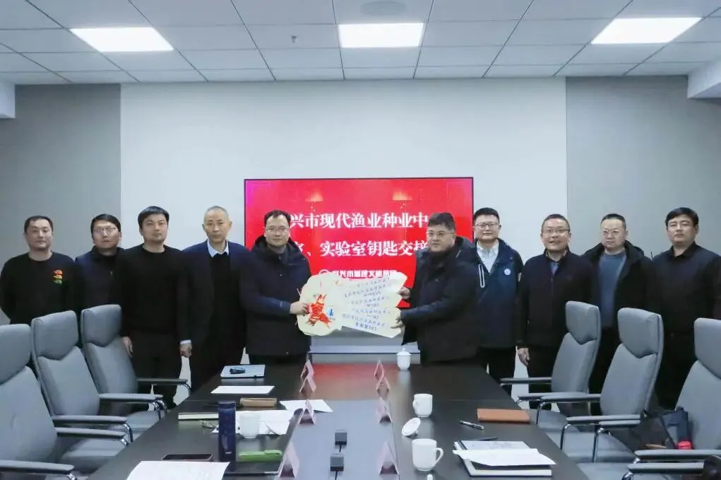 徐生副主任在接过钥匙时表示,将紧密围绕集团现代渔业高质量发展的需求,加快推进会议成果转化,真正实现“把实验室建在塘口,让专家团扎根水边”。