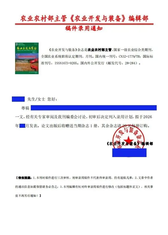 《农业开发与装备》-三网收录的国家级农业类评职称期刊,有影响因子!