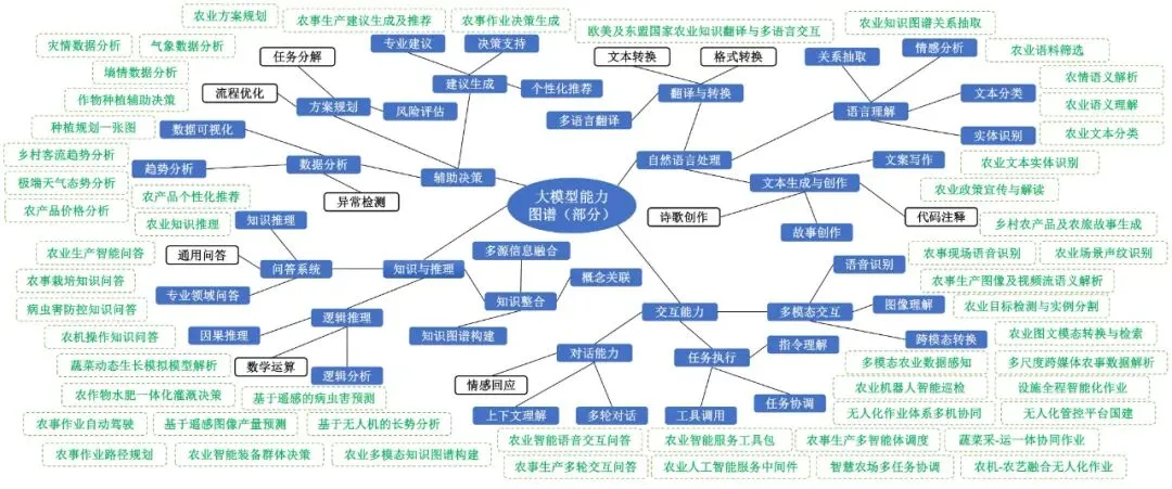注:蓝色代表deepseek可以在农业应用的能力,绿色代表农业应用场景。