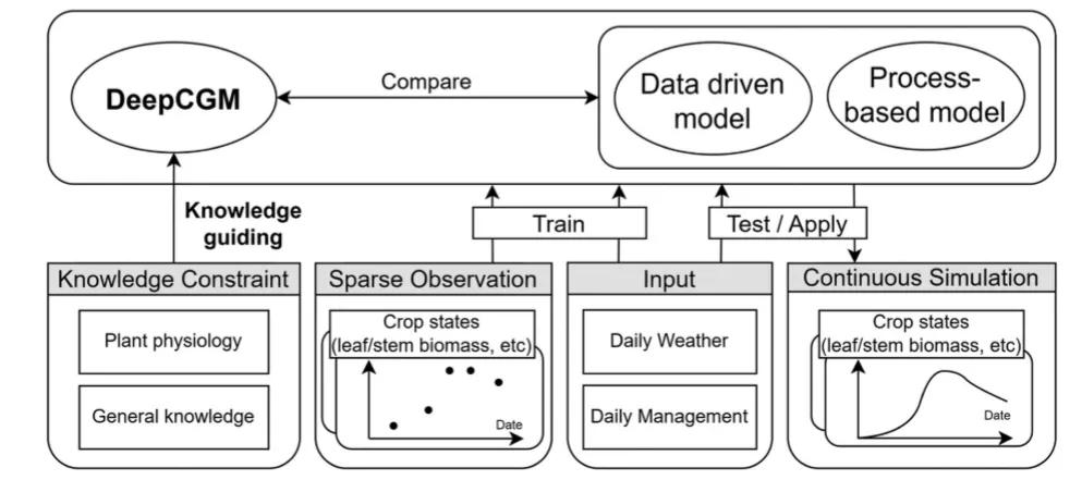 研究背景:基于过程的作物模型被广泛用于模拟作物生长过程。然而,这些模型因简化过程表征和参数估计困难而存在局限性。机器学习方法作为一种新兴范式,在规避这些局限方面展现出潜力,但也因其黑箱特性(未必包含已知作物生长机制)及对大数据的需求(多数农业应用难以满足)而受到质疑。