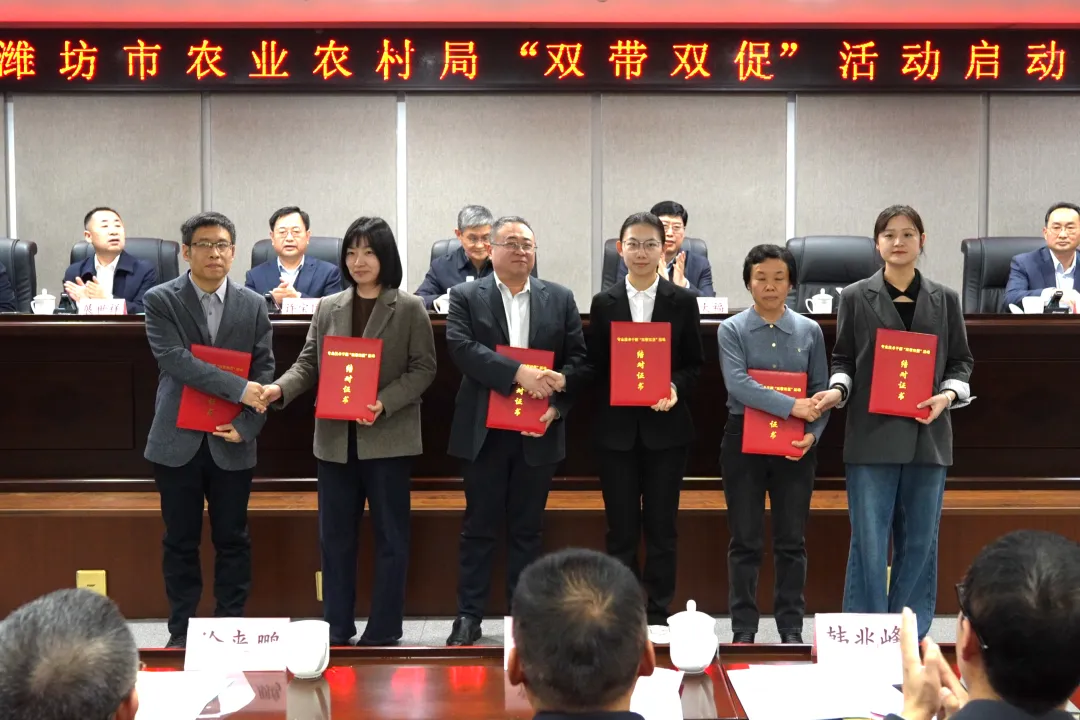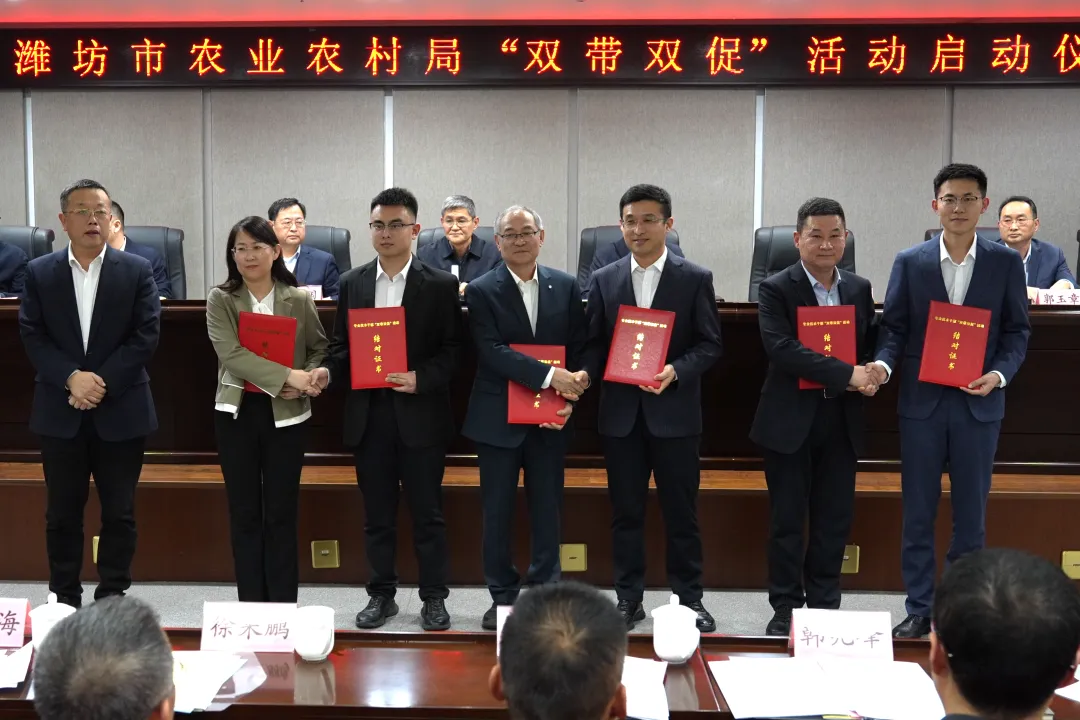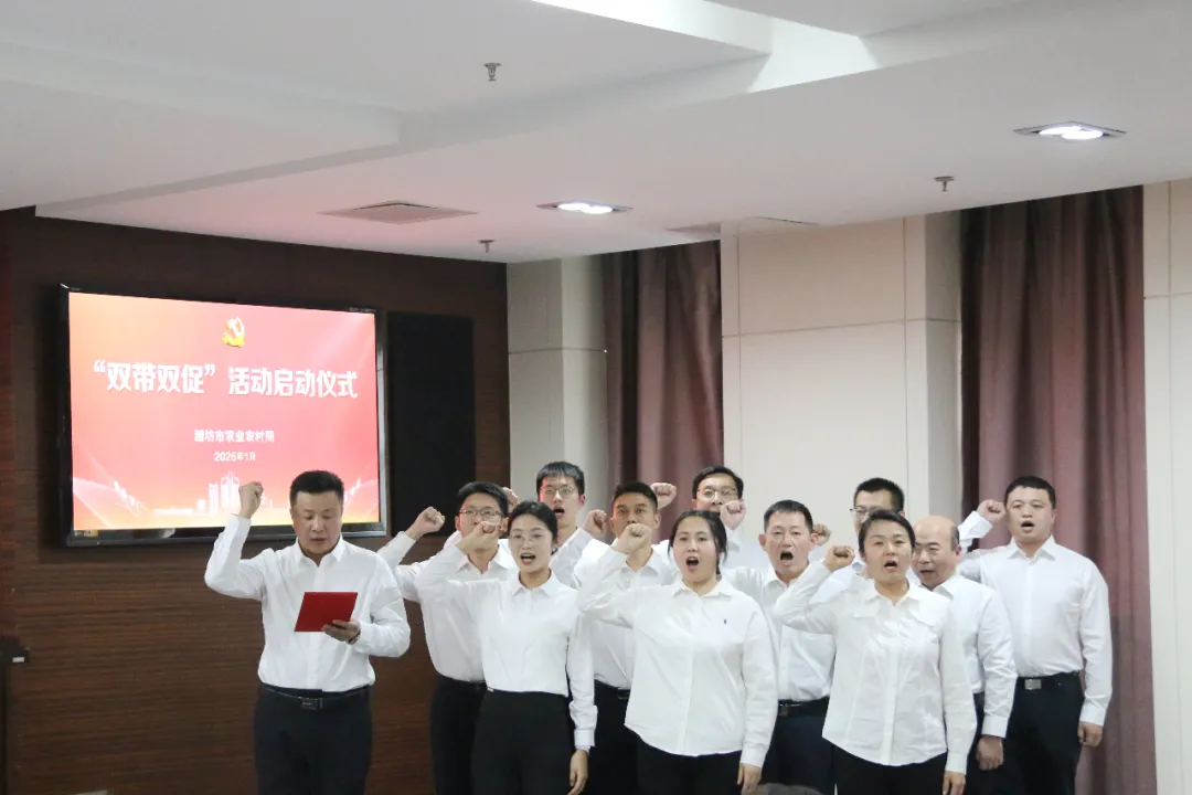 启动仪式上,宣读了《潍坊市农业农村局关于开展“双带双促”活动 打造高素质专业技术干部队伍的工作方案》,为导师带徒代表和科研团队颁证授旗。导师代表、科研团队骨干代表、年轻专业技术人员代表依次作表态发言。农业生态与绿色低碳科研推广团队,代表市农业农村局全体专业技术人员上台宣誓。农技人员代表表示要传承发扬潍坊“三农”工作者“厚重朴实、勤奋敬业,精益求精、甘于奉献”的优良传统,以深入开展“双带双促”活动为契机,牢记为农初心、担当兴农使命,立足岗位、潜心钻研、互学互促、共同提高,努力成为“一懂两爱三过硬”的合格人才。会上还印发了《给全局农业技术人员的一封信》《“双带双促”工作记录手册》《专业技术干部个人成长手册》。