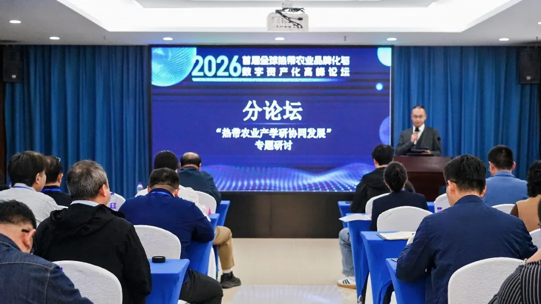 2026年1月29日,由海南大学校友筹备的全球热带农业品牌化与数字资产化高峰论坛,在海南大学国际会议交流中心隆重启幕。此次论坛由海南大学国际商学院2009级校友罗鹏飞牵头, 2014级校友刘燕飞、2011级校友符致锐等多位校友积极参与筹备,国际商学院付景涛副院长做学术支持,童泽林副院长、蒋国洲教授莅临会场。论坛以“数字赋能・品牌引领・绿色共生—全球热带农业升级新路径”为主题,吸引了全球热带农业领域产、学、研、用各界精英齐聚椰城,研究学者、金融机构、企业家共商产业发展。