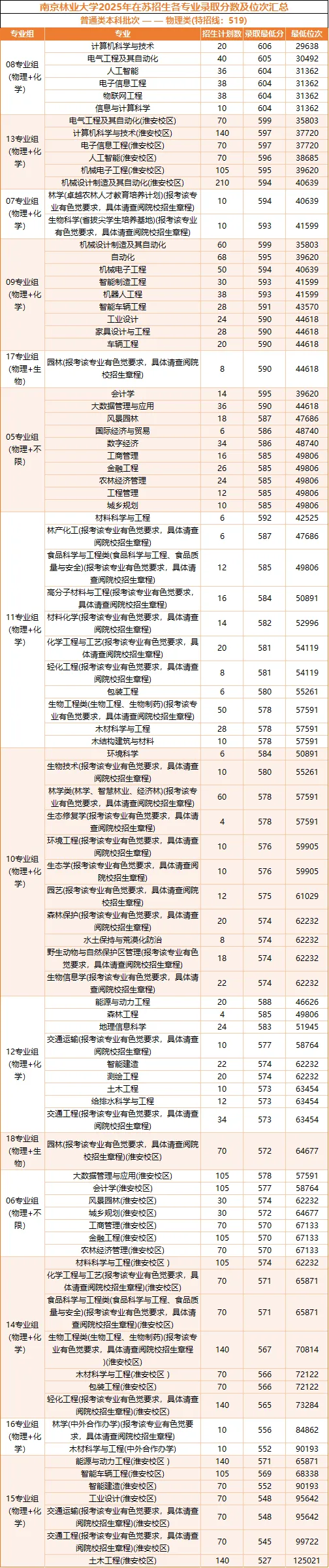 南京林业大学,2025年在江苏专业录取分数,一起来了解一下吧!