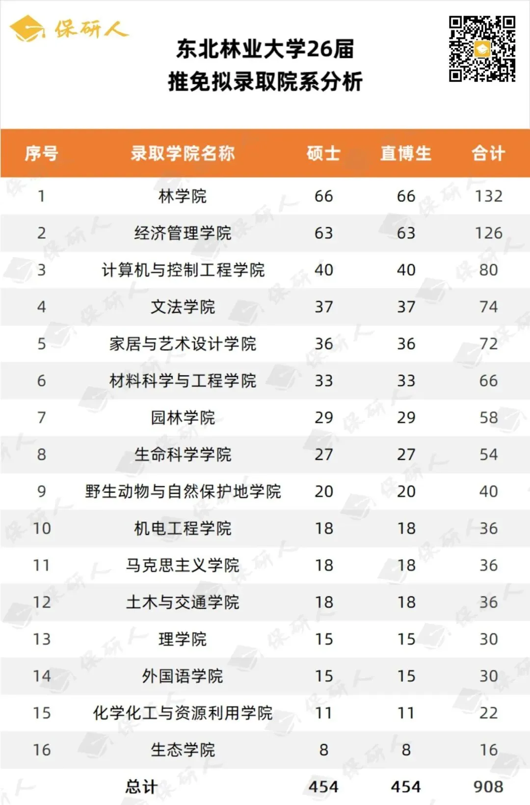 从院系分布看,传统优势学科牵头的林学院以132人领跑,经济管理学院紧随其后(126人),这两大院的推免名额占全校总名额近三成;计算机与控制工程学院(80人)、文法学院(74人)等院系的名额也处于中上游,新兴工科与人文社科类的推免资源同样充足。