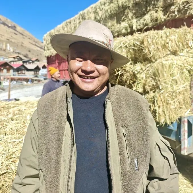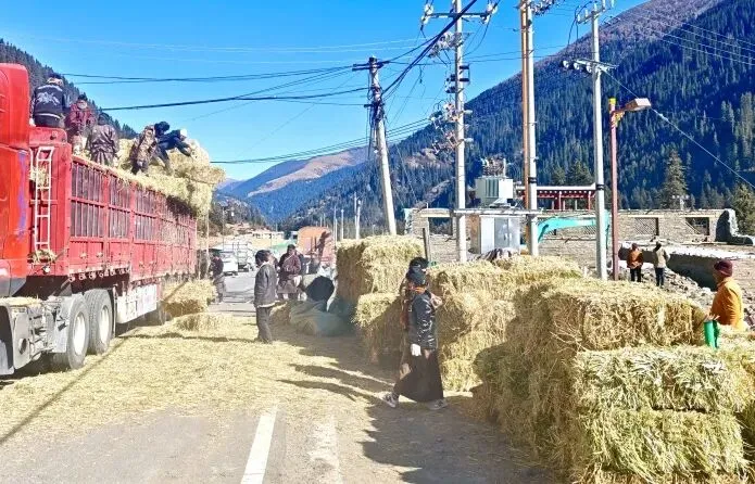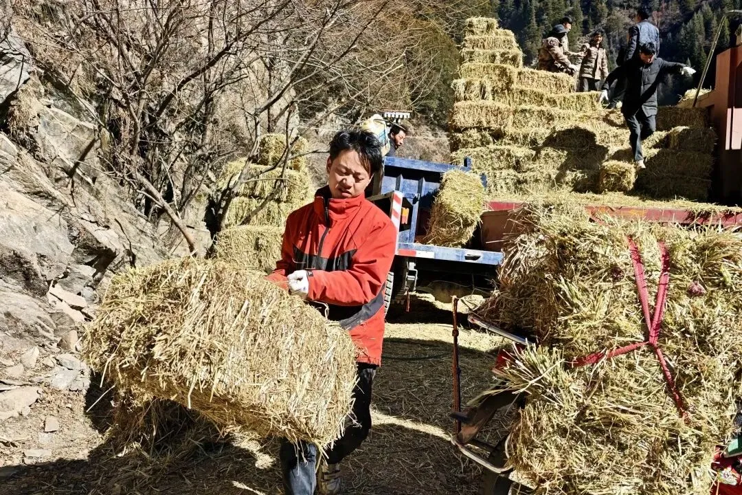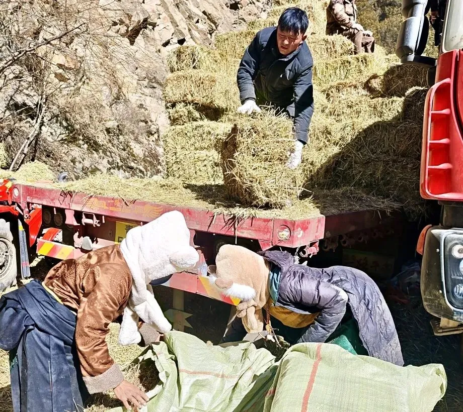 这几天天气还挺冷,家里的饲草眼看就要不够了,县上送来的这批干草真是雪中送炭!有了这些‘口粮’,我家20头牦牛就能安心过冬了。