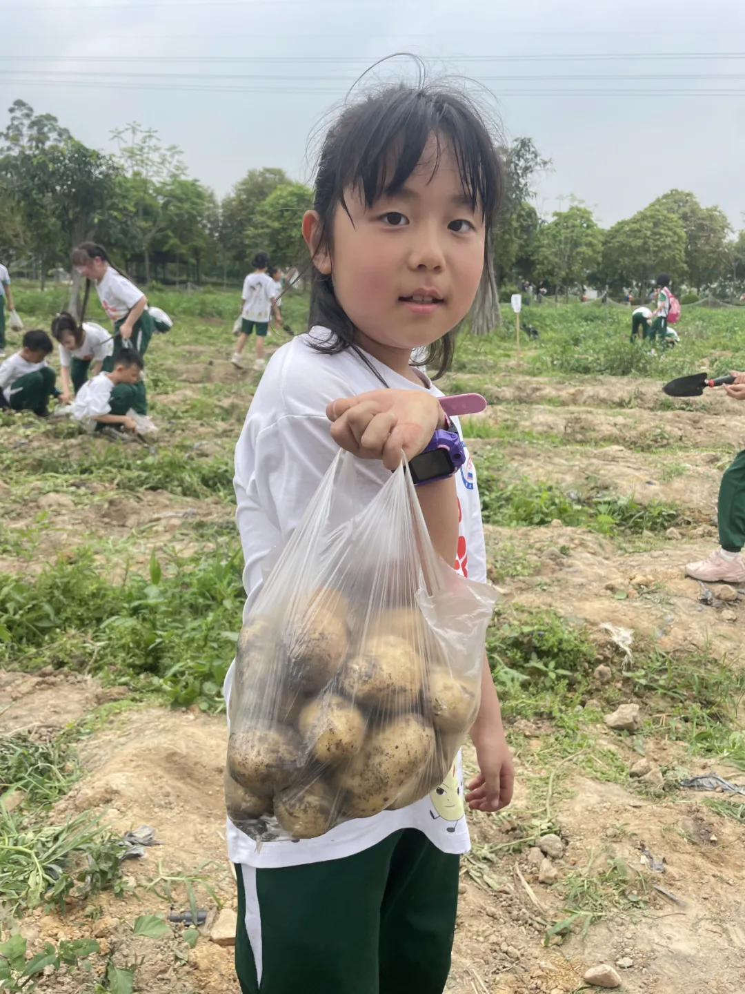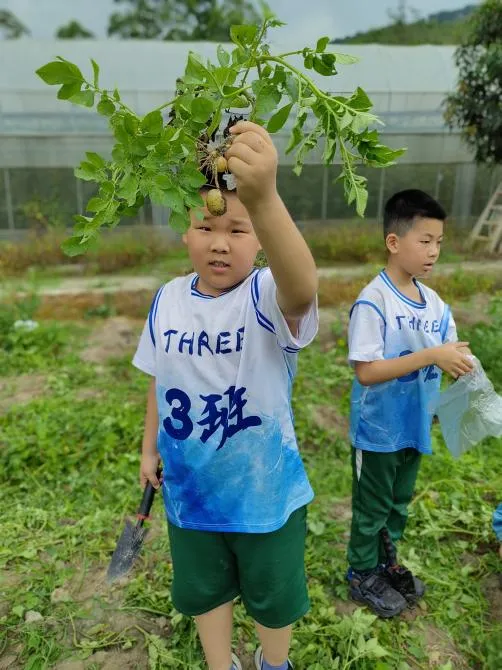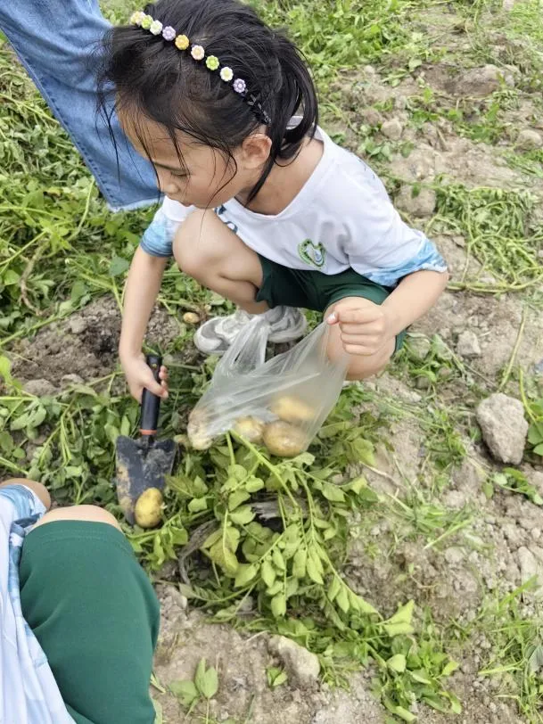 纸上得来终觉浅,绝知此事要躬行。孩子们兴致盎然地来到了土豆地里,和阿姨们拿了铲子后,心中怀揣着要为家人带回一道菜的小小愿望,便争先恐后地挖起土豆来。通过开展传统农耕研学活动,弘扬农耕文化,在泥土和大自然的零距离接触中,他们深深地感受着劳动的艰辛与快乐。